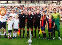 A small delegation of Penya Blaugrana London attended a pre-season game played by FC Barcelona B team at Bolton. Two of our youngest penya members were honoured as mascots and shared a warm up session with the likes of Deulofeu, Araujo and Dongou. Penya Blaugrana London was also able to position our famous St George flag behind one of the goals. This is an enormous flag (8m x 4m) that no doubt made our players feel the support of their fans in the stadium.