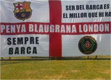 A small delegation of Penya Blaugrana London attended a pre-season game played by FC Barcelona B team at Bolton. Two of our youngest penya members were honoured as mascots and shared a warm up session with the likes of Deulofeu, Araujo and Dongou. Penya Blaugrana London was also able to position our famous St George flag behind one of the goals. This is an enormous flag (8m x 4m) that no doubt made our players feel the support of their fans in the stadium.