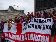 Penya Blaugrana London and Peña Mr Pentland Athletic Club Bilbao London organised a friendship match in celebration of the 25 May 2012 Copa del Rei final. PB Mostoles also was represented in the event with its international relations delegate Rafael Candelas Quintanar.