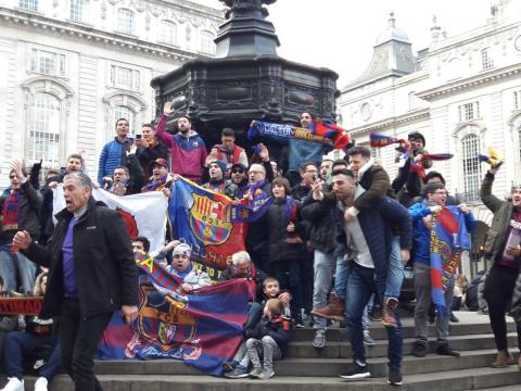 Picadilly Circus, at the iconic Shaftesbury Memorial Fountain