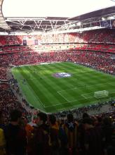 A small delegation of Penya Blaugrana London attended a pre-season game played by FC Barcelona B team at Bolton. Two of our youngest penya members were honoured as mascots and shared a warm up session with the likes of Deulofeu, Araujo and Dongou. Penya Blaugrana London was also able to position our famous St George flag behind one of the goals. This is an enormous flag (8m x 4m) that no doubt made our players feel the support of their fans in the stadium.